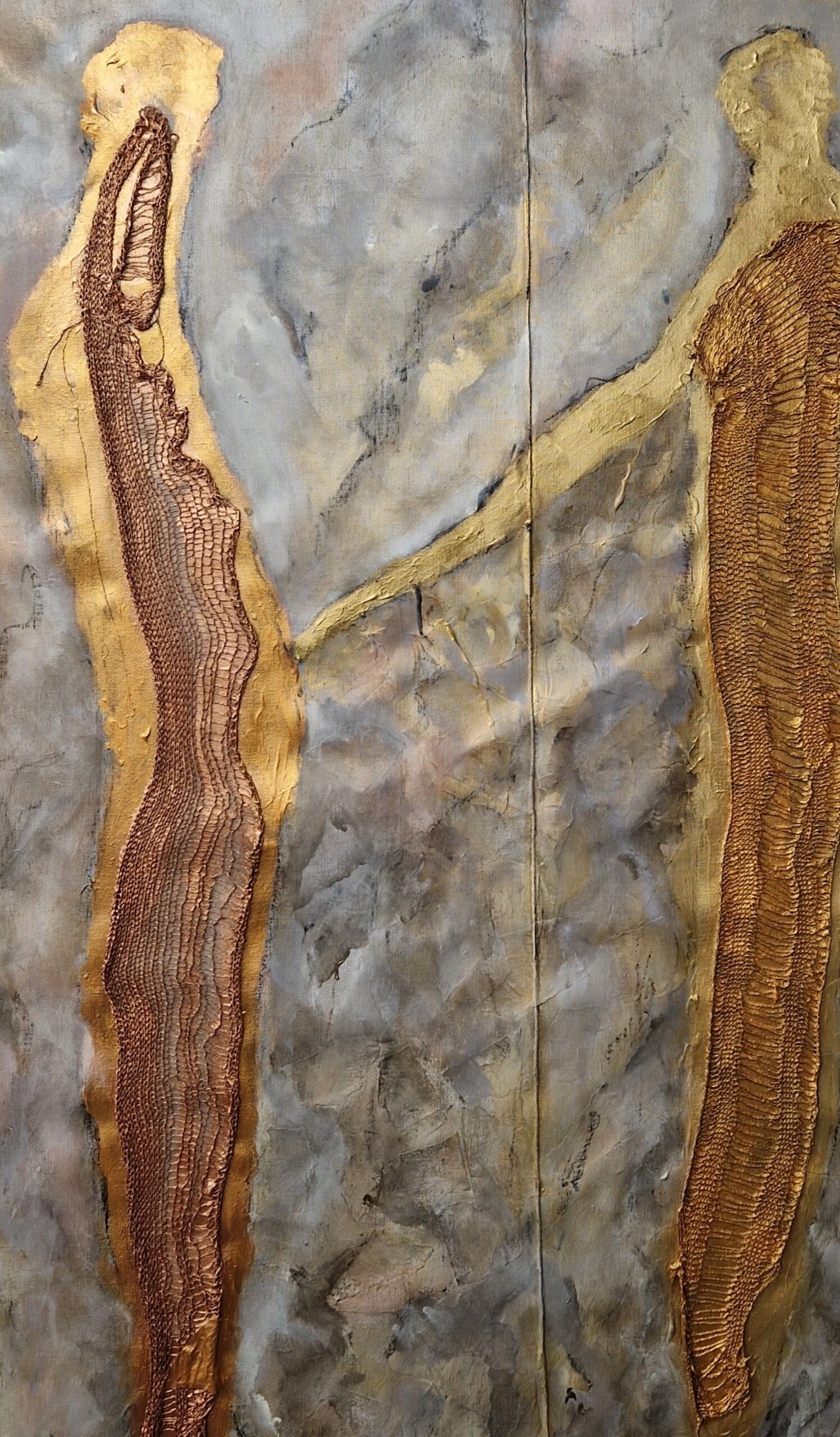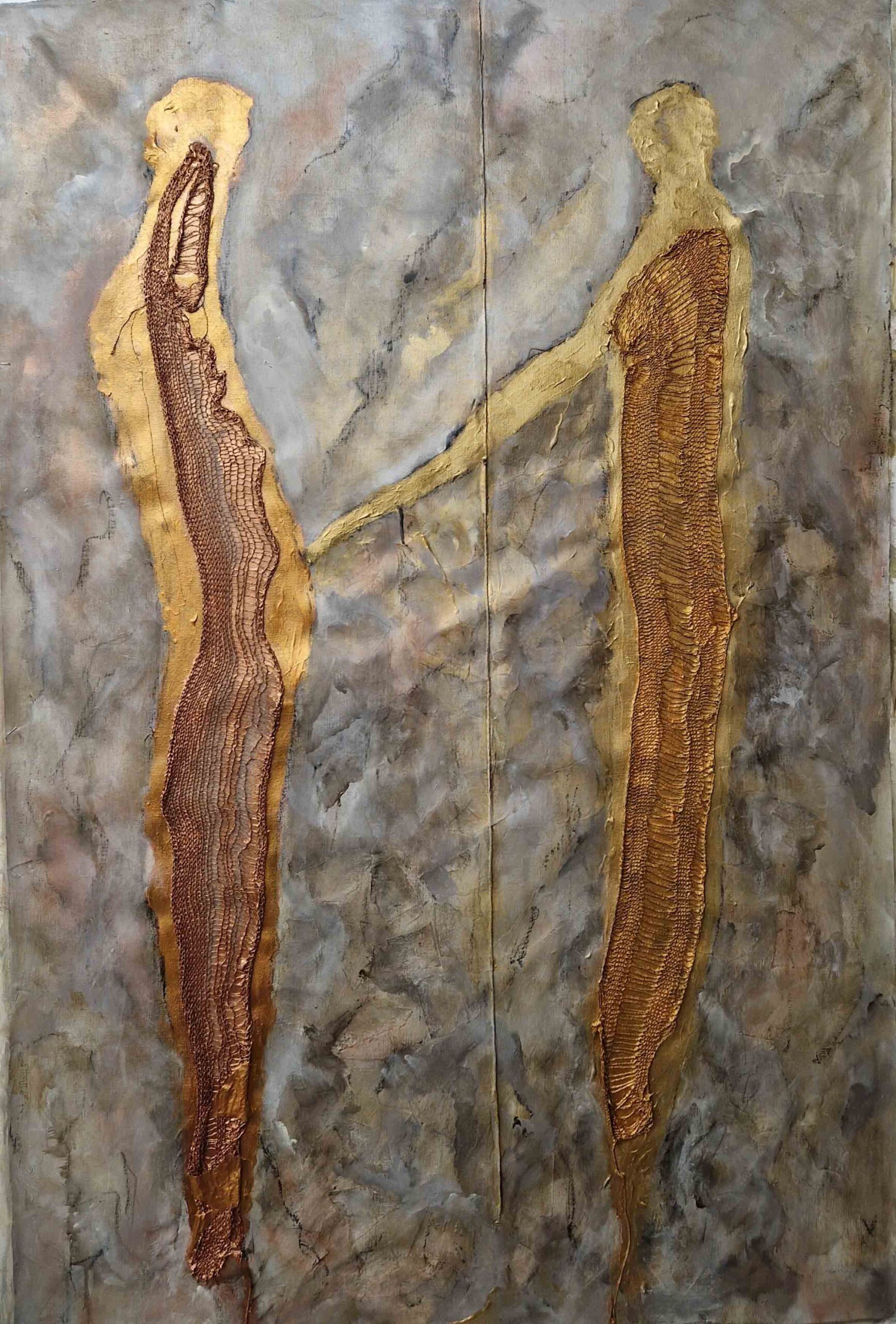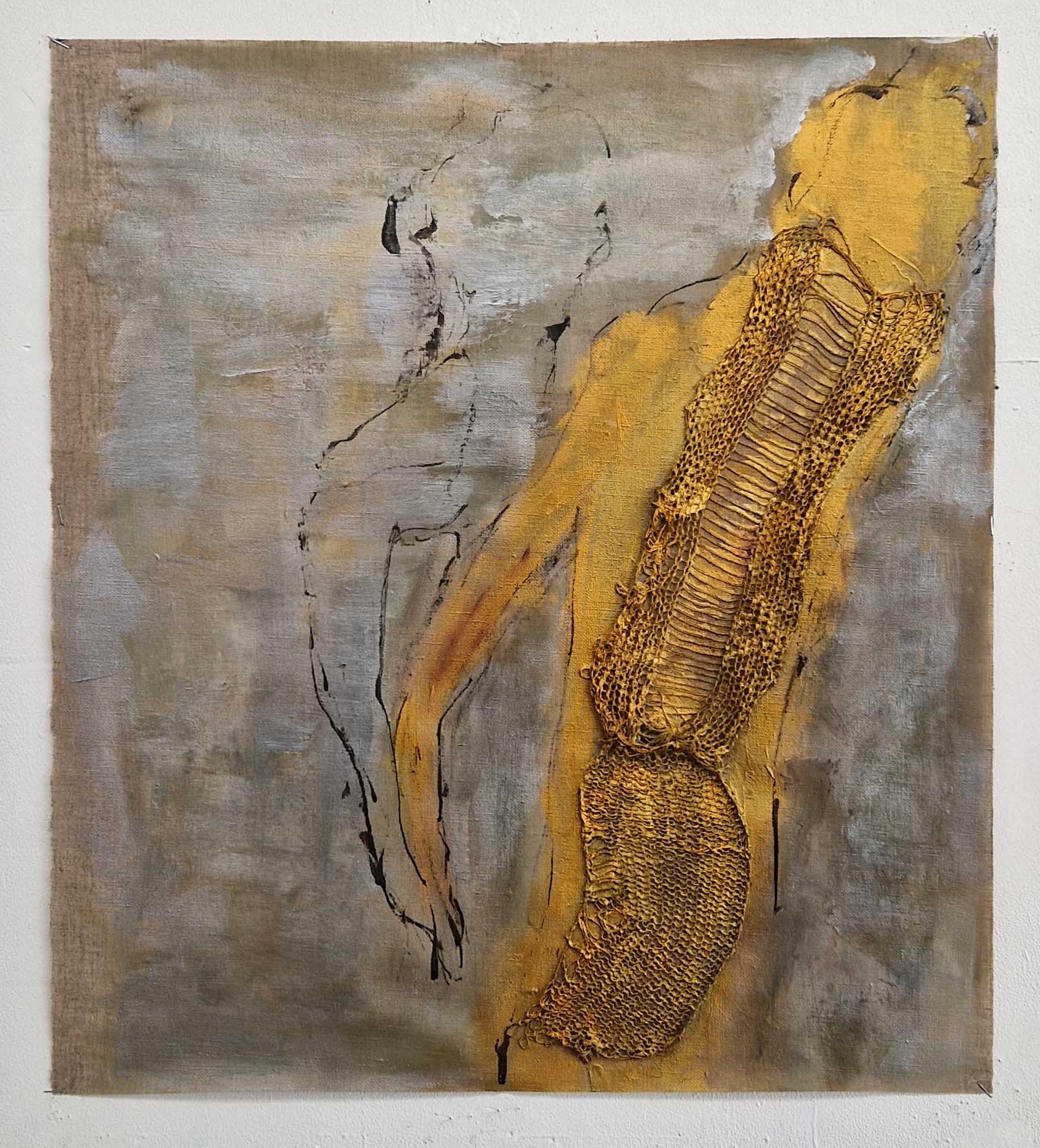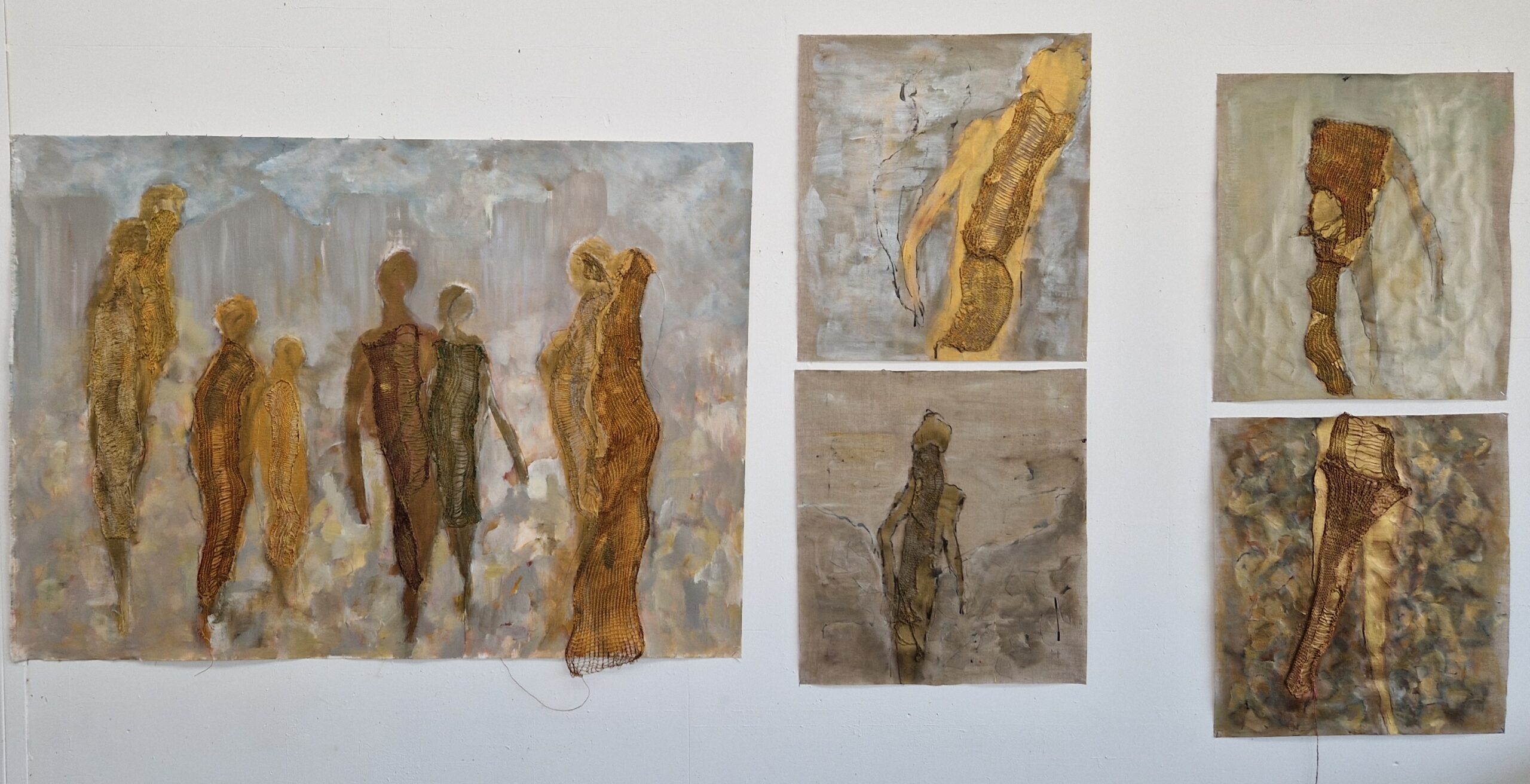 In my work, I do not seek to show the equestrian world, but rather to convey the physical sensations, the essence of the link between humans and living animals, and the notion of care embodied in the relationship between the rider and their partner. Through lines, paint, and materials, memories come back to life, tactile sensations and feelings
