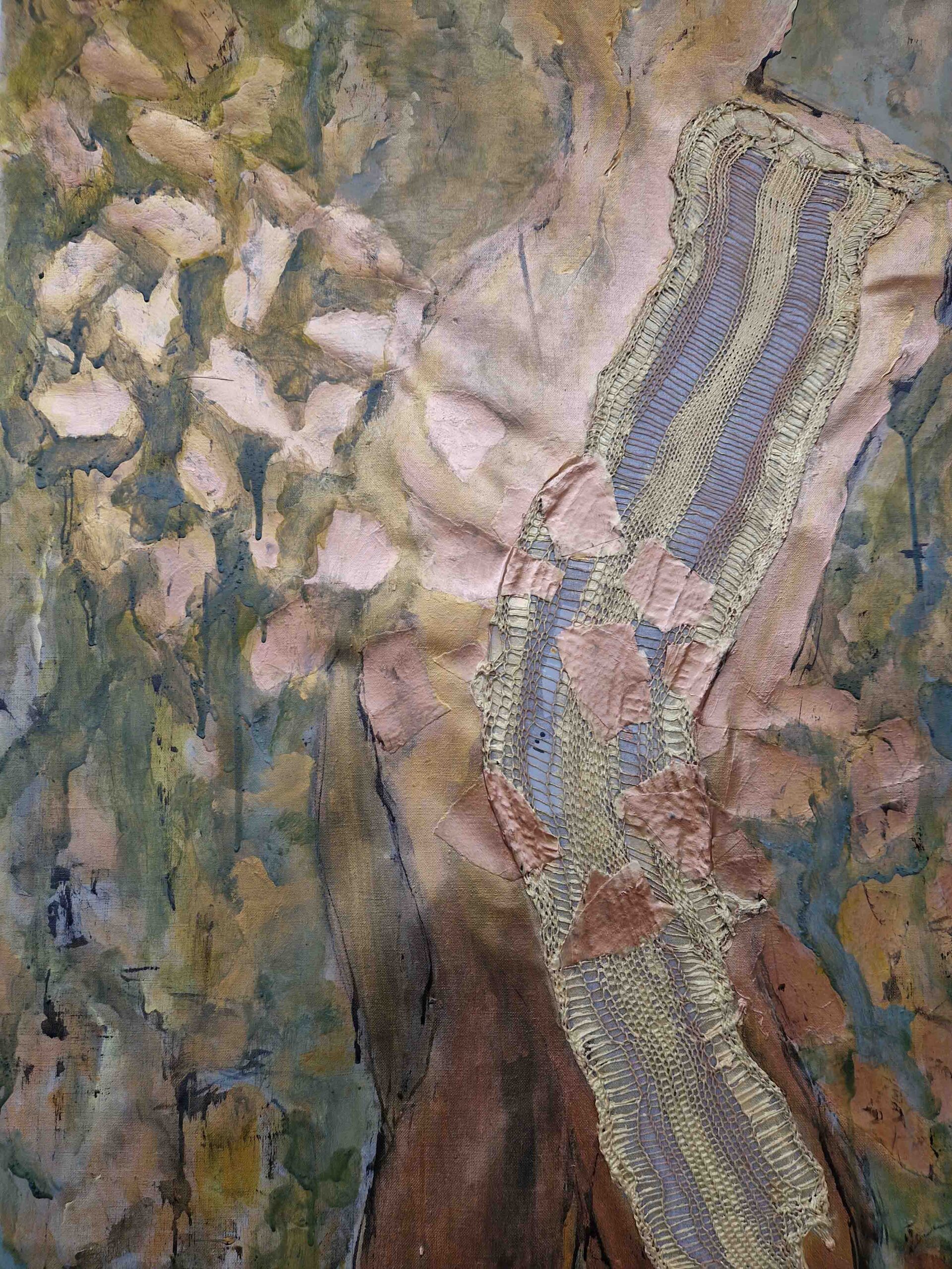 J’exprime des états entre vitalité et déclin, entre destruction et réparation, entre vie et mort, et retranscris la capacité réparatrice du lien entre les êtres vivants, les lieux habités, les espaces naturels. La connexion entre biodiversités offre un potentiel de soin, de transformations mutuelles et ouvre vers la possibilité d’une nouvelle vie.